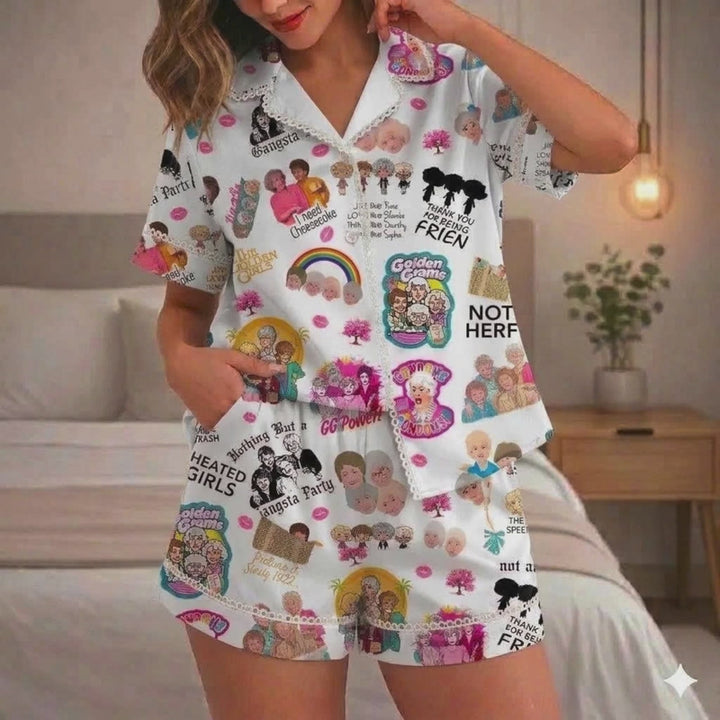Golden Girls Pajamas Matching Set, Latin Silk Sleepwear for Women and Kids, Funny Retro 80s TV Show Loungewear, Cute Friendship PJ Gift